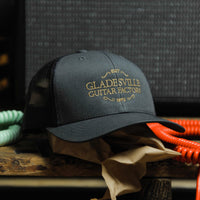Represent Gladesville Guitar Factory wherever you go — on stage, on the road, or even out snorkeling (well, maybe not in the water). The Guitar Factory Logo Flexfit Trucker Cap combines classic style with premium quality, offering a comfortable fit and a durable design built to last.