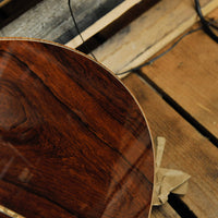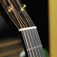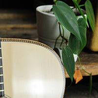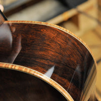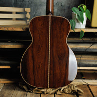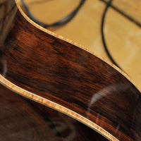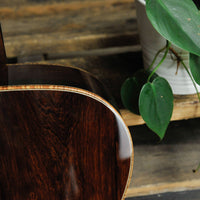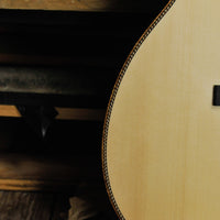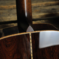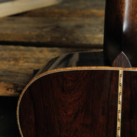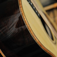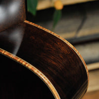 Its build is elevated with signature appointments: koa body binding, DB Signature herringbone purfling, and a luxurious snakewood fretboard adorned with short-pattern bone squares and diamonds. Waverly gold tuners with snakewood buttons complete the look, while the Honduran mahogany neck and aged tone construction offer a responsive, vintage-informed feel. A beautifully reimagined OM for collectors and serious players alike.