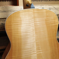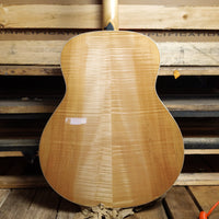 Visually, the 618e stands out with maple binding with koa purfling, Mission-style mother-of-pearl inlays, and an Antique Blonde gloss finish—all details reserved for Grand Orchestra models.