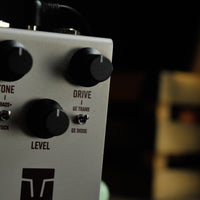 The Keeley Manis Overdrive uniquely combines both germanium NOS transistors and diodes for more compression and saturation plus a 3db bass-boost makes it unlike any other mythical Klone!