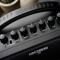 The BOSS Katana-Mini delivers the acclaimed Katana sound and feel in an ultra-compact, battery-powered amp that you can take anywhere. Combining authentic multi-stage analog gain circuitry, classic amp voicings, and onboard tape-style delay, this small but mighty combo brings inspiring tone to your desk, practice room, or backpack.