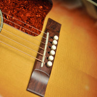 Paired with the powerful Aged Tone Adirondack top is a set of Sinker Mahogany back and sides—highly prized for its stability, density, and deep, woody character. The result is a dreadnought voice that is warm, focused, and articulate, with outstanding fundamental strength.