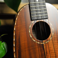 The Deluxe trim enhances this historic design with upgraded tonewoods, elegant rope detailing, and premium appointments throughout. Crafted by skilled luthiers at the Kamaka factory in Honolulu, this instrument blends traditional Hawaiian sound with elevated aesthetics and feel, making it a standout choice for collectors and players alike.