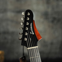 Eastman Juliet Electric Guitar in aged varnish at Gladesville Guitar Factory. Featuring a solid one-piece okoume body, swept-wing offset design, Seymour Duncan Phat Cat P-90 pickups, and a varnish finish for natural resonance. Includes gig bag. A beautifully crafted, lightweight, and expressive instrument.