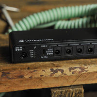 The Canvas Power 15 has 15 isolated power outputs delivering up to 500mA of clean power at 9v. Two of the outlets are variable voltage, letting you switch between 9v, 12v, and 18v for powering high-voltage pedals. It also includes a USB-C port for powering devices like your phone or tablet while you play.