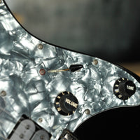 This guitar shows some patina on the cosmo hardware, adding character while remaining fully functional. A double locking tremolo system ensures tuning stability even with expressive playing.