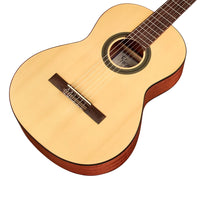 Built with a spruce top and mahogany back and sides, the C1M 3/4 offers a warm, balanced tone and solid projection. Its slim neck profile ensures effortless playability, while the traditional mosaic rosette and matte polyurethane finish add a touch of elegance.