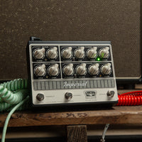 The Imperial All-Tube Preamp pedal delivers Tone King’s legendary MKII amplifier's '50s tweed, '60s blackface, and vintage British rock tones in a compact, pedalboard-friendly format. It features the exact preamp section and phase inverter circuitry of the Imperial MKII amp, as well as Reverb, Tremolo and Attenuation, resulting in a pedal that sings with harmonic richness and blooming touch response. Powered by three 12AX7 preamp tubes running at high voltage, this preamp delivers the amp's sound, responsiveness, and exquisite interaction with your pickups and effects. The onboard, low-latency impulse response (IR) loader (per channel), Headphones, easy integration and expansion with your existing gear, and MIDI capabilities, takes these iconic tones into the new era of guitar playing.