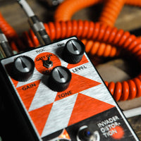 The Maestro Invader is a high-gain, all-analog distortion pedal designed for modern players who want aggressive, dominant tones with rich harmonic content. From saturated rhythm crunch to searing lead tones, the Invader delivers a wide palette of distortion while maintaining clarity and punch.