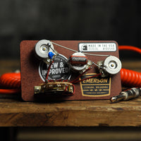 Designed for traditional Strat-style configurations, this kit features Emerson’s high-quality PREMIER PRO split shaft potentiometers, an Oak Grigsby 5-way switch, and a prewired Switchcraft output jack. The included Emerson Paper in Oil capacitor helps deliver smooth, musical tone shaping, giving your pickups enhanced warmth and articulation.
