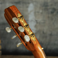 Featuring a cedar top paired with rosewood back and sides, this guitar offers warmth, depth, and clarity across the full range of the instrument, making it ideal for classical repertoire and expressive fingerstyle playing.